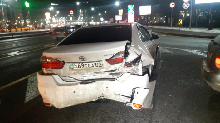 Авария произошла на пересечении проспекта Аль-Фараби и улицы Желтоксан. Со слов очевидцев, BMW X6 двигался по проспекту в западном направлении. Водитель внедорожника решил резко перестроиться в левый ряд и на полном ходу въехал в Toyota Camry 70-й модели, а затем в Toyota Camry 55-й модели. От сильного удара Camry 55 по инерции врезалась в Subaru Legacy, а Camry 70 столкнулась с еще одной Toyota Camry.