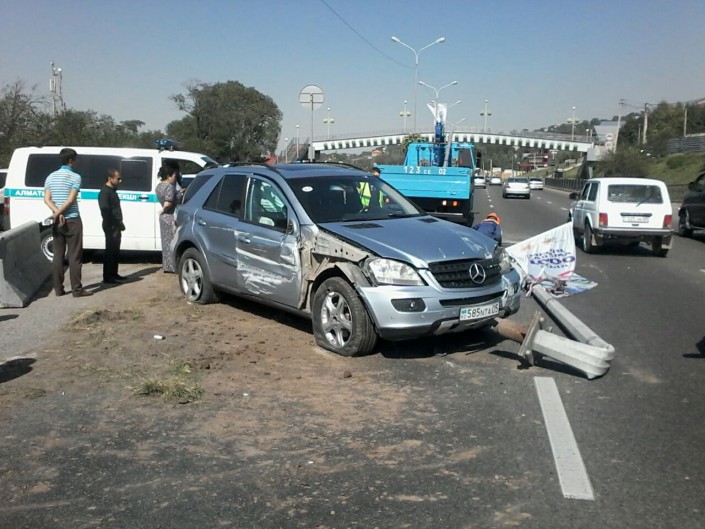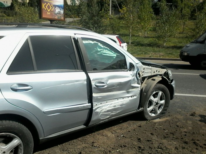 Грузовой автомобиль "ГАЗель", Mercedes ML и Hyundai Аccent двигались по дороге в южном направлении. По словам водителя Mercedes, он попытался обогнать "ГАЗель", которая следовала в среднем ряду. Однако, по неизвестным пока причинам задел Hyundai Аccent, из-за чего тот вылетел на разделительный газон. Там автомобиль сбил столб, который упал на проезжую часть и задел BMW Х5 и Audi 80, следовавших на север по ВОАД. По предварительной информации, пострадавших в ДТП нет.