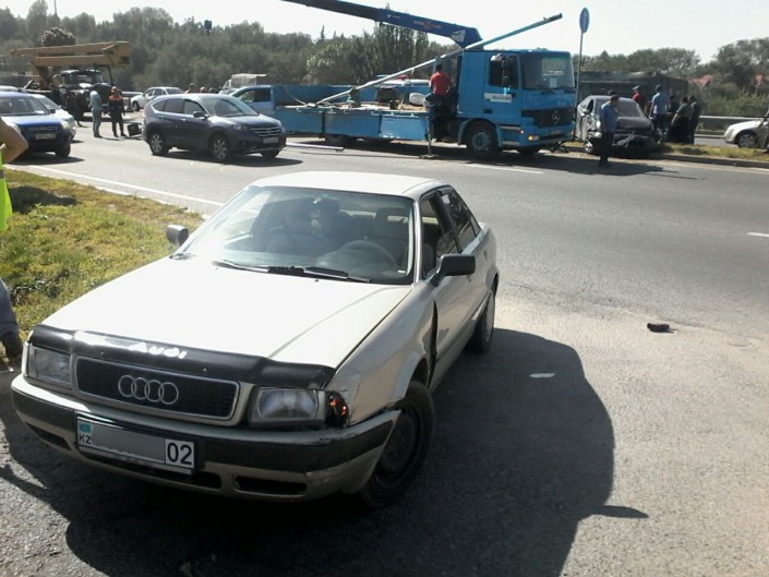 Крупное ДТП с участием шести автомобилей произошло на Восточной объездной автодороге (ВОАД) в Алматы, сообщает корреспондент программы "Территория происшествий" на телеканале СТВ.