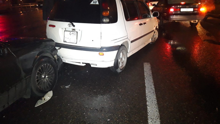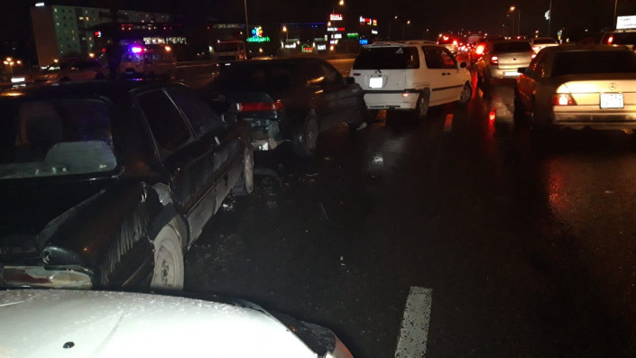 Авария произошла на развязке на пересечении улицы Саина и проспекта Райымбека. По словам очевидцев, водитель Renault двигался по Райымбека в западном направлении и допустил столкновение с Mitsubishi, затем еще с тремя автомобилями, которые остановились перед затором.