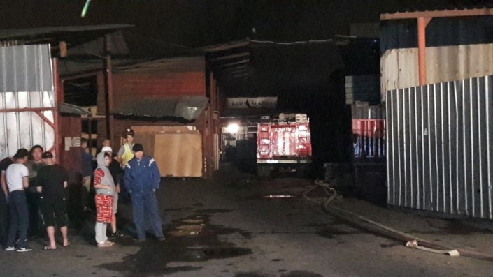 Как сообщила официальный представитель ДЧС Алматы Сандугаш Баймухамбетова, сообщение о том, что горит цех поступило на пульт "101" в 00.04. "Силы и средства выехали по повышенному номеру вызова. Первые пожарные пожарные расчеты прибыли к месту вызова уже через 6 минут, в 00.10 часов. К моменту прибытия пожарных обстановка была следующая: горел цех по распилу ДСП с переходом огня частично на кровлю магазина "Азия-мебель", а также на кровлю 2-х этажного административного здания",- сообщила Баймухамбетова.