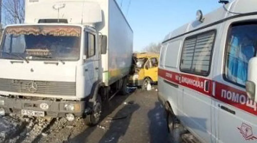 Авария произошла 17 апреля. По данным УДП ДВД Акмолинской области, "Мерседес" оказался зажатым между двумя фурами, которые резко затормозили на неровной дороге.
