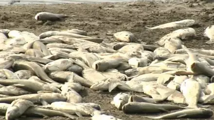 Мертвой рыбой завалило берег озера в Алматы Кадр из сюжета канала КТК