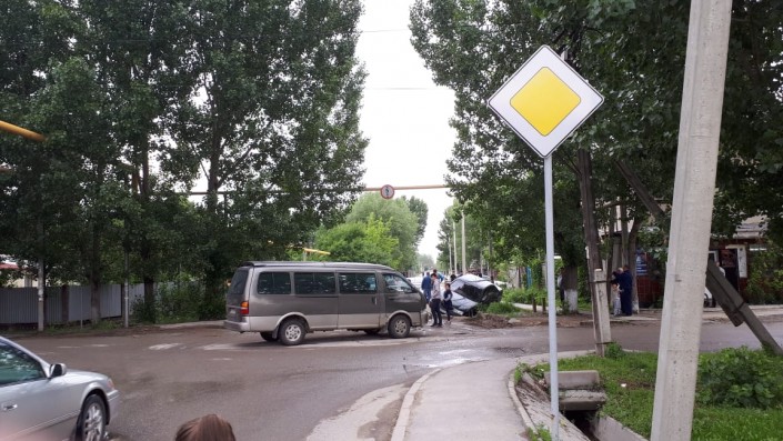 Микроавтобус столкнул с дороги Toyota в Алматы. Есть пострадавший