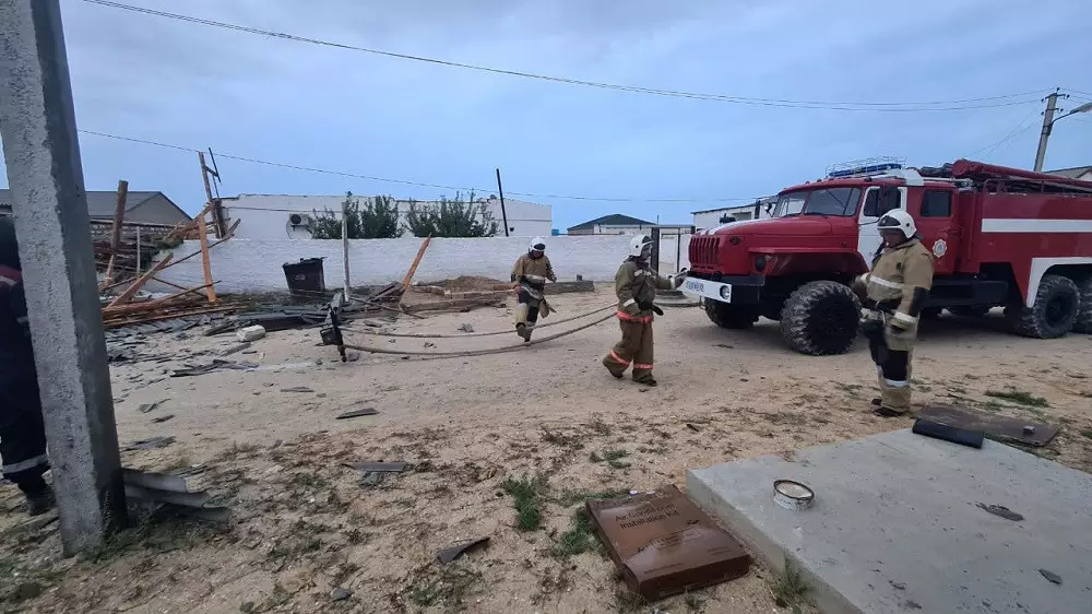 Инцидент произошел сегодня, 15 августа, примерно в 08.20. От удара молнии разрушилась кровля жилого дома, расположенного на улице Кожабекова в Форт-Шевченко (город в Мангистауской области). Судя по кадрам, упал и электрический столб.