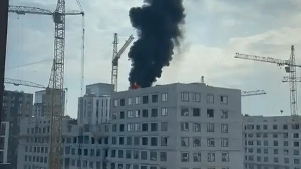 Напомним, в 16:28 в районе Нура, по улице Мухамедханова, 4В, произошло возгорание на новостроящемся объекте. В настоящее время на территории строящегося ЖК виден столб черного дыма и языки пламени.