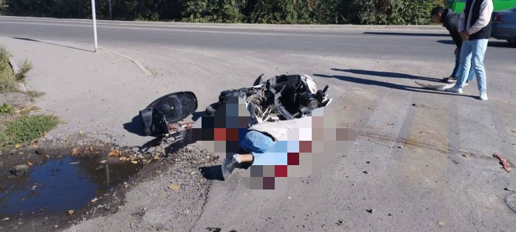 Инцидент произошел в микрорайоне Карасу по улице Бурундайская. Об этом сообщил читатель Tengrinews.kz, прислав фото с места происшествия на редакционный WhatsApp-номер +7 777 001 44 99. Судя по снимку, весь удар пришелся на голову мопедиста.