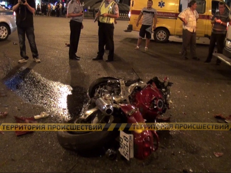 Мотоцикл на большой скорости врезался в автомобиль в Алматы, сообщает Auto.Lafa.