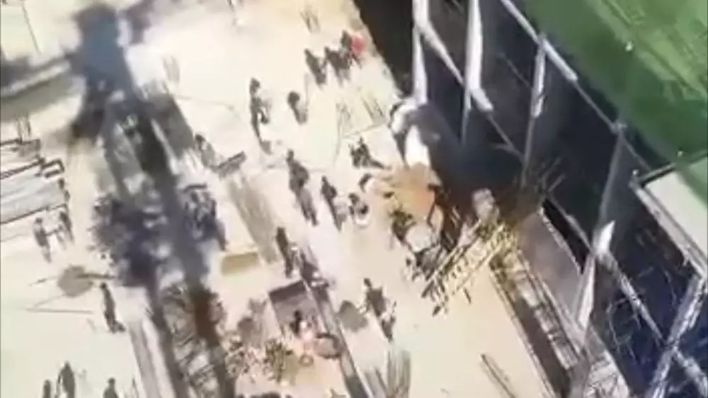 Инцидент произошел утром 20 мая в столичном районе Есиль. Видео с места происшествия появилось в соцсетях. В публикации отмечается, что пострадавший работает строителем.