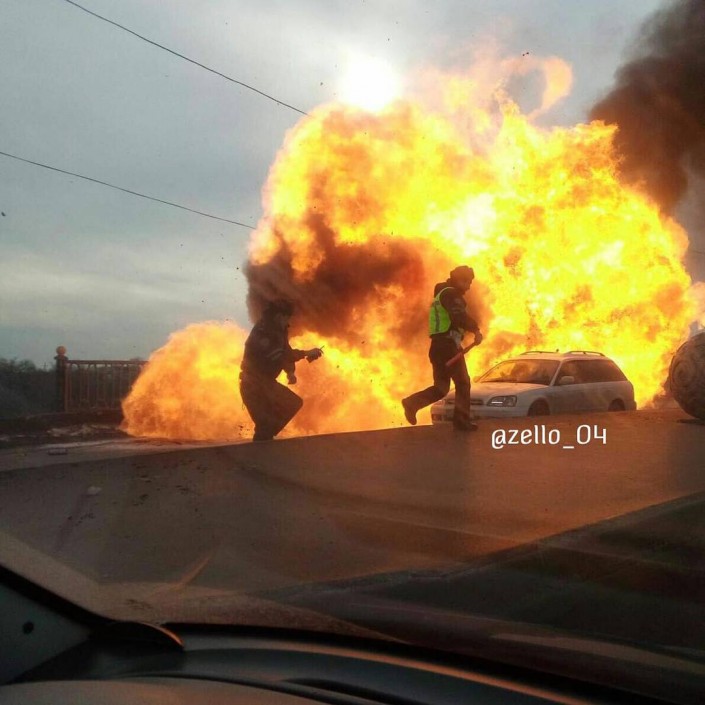 В Актобе на мосту в 5-м микрорайоне днем 23 января загорелся и взорвался легковой автомобиль Volkswagen Passat. Очевидцами инцидента стали десятки автолюбителей. Видео и фото происшествия они прислали на страницу zello_aktobe в Instagram.