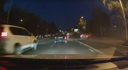 На выделенной полосе по Абая в Алматы столкнулись три авто Кадр из видеоролика YouTube пользователя Aden Maksat