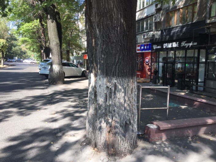 В акимате Алматы изучили фото. Как выяснили сотрудники Медеуского районного акимата, деревья закатали в асфальт еще несколько лет назад при обустройстве парковочного кармана.