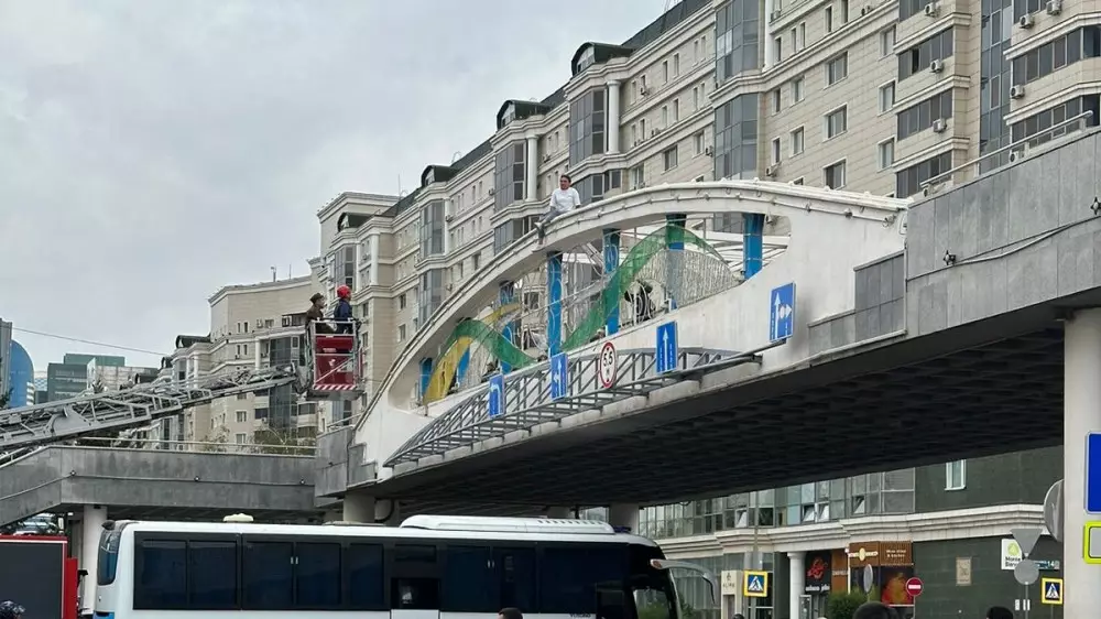 Ранее сообщалось, что женщина взобралась на мост в центре Астаны и выдвинула требование.