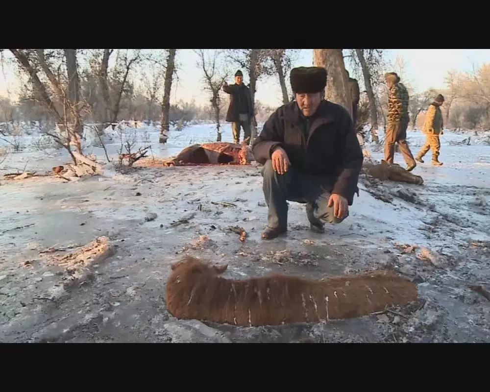 Наводнение в ЮКО: Сырдарья вышла из берегов, затопила пастбища. Погибли десятки голов скота, передает телеканал СТВ. Местные жители рассказали, что пастбища превратились в огромное кладбище. Трупы утонувших лошадей скованы льдом. Фермеры возмущаются, что о надвигающейся опасности их никто не предупредил, поэтому скот местные жители пытались спасти самостоятельно. В областном ДЧС рассказали, что о наводнении в ЮКО знали сельские акимы. "Мы выезжаем только тогда, когда есть опасность для жителей. А животных должны спасать сами люди", - отметил начальник отдела предупреждения ДЧС Ергали Бахаев. Фермеры затрудняются подсчитать убытки, которое им нанесло наводнение в ЮКО. Большинство животных могло унести быстрым течением Сырдарьи. По предварительным данным, утонули три табуна лошадей и десятки верблюдов. Как сообщалось ранее, наводнение в ЮКО произошло из-за образования ледостава в районе шлюзов Коксарайского контррегулятора. Помимо этого, в Сырдарью из Шардаринского водохранилища сбрасывается 900 кубометров воды в секунду. Река покрылась ледоставом от головного узла котрегулятора до поселка Кожатогай и далее до границ Кызылординской области.