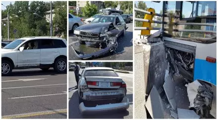 По данным "Алматыэлектротранса", двигавшийся по проспекту Абая автобус после остановки "3-й микрорайон" перед улицей Саина продолжил движение в юго-западном направлении по маршруту. "Во время движения у водителя автобуса резко ухудшилось самочувствие, и он частично потерял сознание, в результате чего произошло столкновение с тремя легковыми автомобилями Audi, Volkswagen Touareg и Toyota Camry. Водителю удалось справиться с управлением, завершив свое движение около ограждения моста. По данным GPS-навигации автобуса, подвижная единица двигалась со скоростью 33 километра в час в момент совершения ДТП", - сообщили в пресс-службе организации.