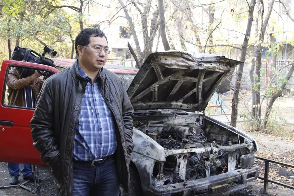Пожар произошел 24 октября в районе трех часов ночи. Автомобиль Nissan Terrano, 1993 года выпуска, был припаркован во дворе. Сам Нарымбаев проснулся от того, что ему в дверь позвонили полицейские и позже препроводили его к сгоревшему авто. Правоохранительные органы должны будут провести пожарно-техническую экспертизу, но защитник заемщиков Kaspi bank уверен, что причиной пожара стал поджог. На это, по словам Нарымбаева, указывает полностью сгоревшее левое колесо: "Его, вероятно, чем-то облили и подожгли".