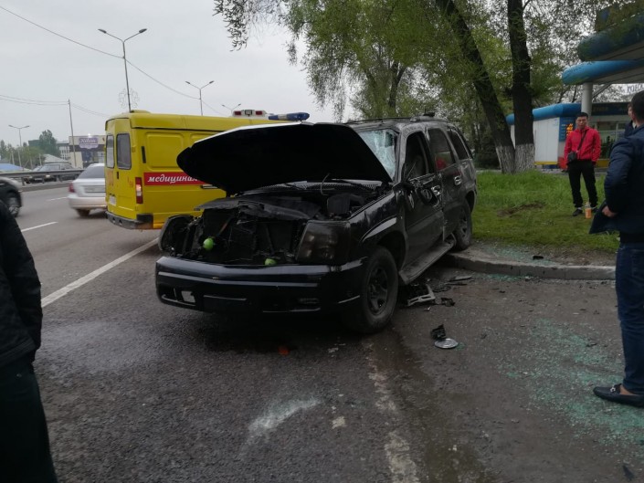 Обе машины двигались в восточном направлении по проспекту Райымбека. В районе улицы Яссауи Nissan Sunny начал поворачивать на АЗС. В этот момент в него на полном ходу врезался джип Escalade, который ехал по полосе общественного транспорта.