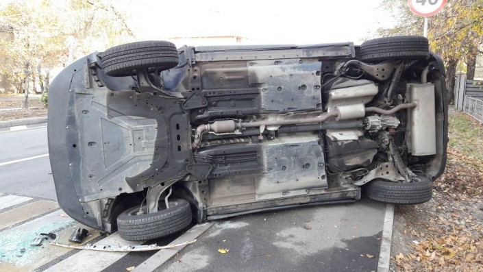 Nissan Qashqai перевернулся от удара Volkswagen Golf на перекрестке в Алматы, передает корреспондент программы "Территория происшествий" на телеканале СТВ.