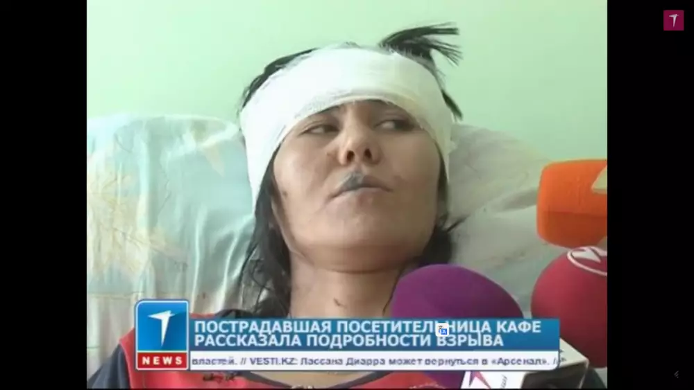 Одна из пострадавших при взрыве в кафе "Керемет", которое расположено напротив Центрального рынка в Алматы, дала интервью журналистам. 30-летняя Майра Инкужекова находится в больнице с закрытой травмой головы и многочисленными порезами. Несмотря на плохое самочувствие, она все же согласилась рассказать о произошедшем, передает "Седьмой канал".