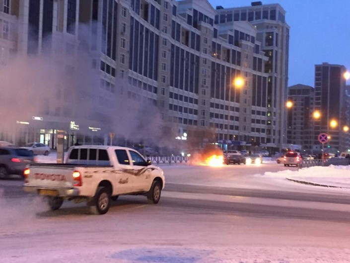Позже в пресс-службе ДВД Астаны сообщили, что в результате ЧП никто не пострадал. В момент возгорания в автомобиле никого не было. По предварительным данным, причиной возгорания стало замыкание электропроводки в моторном отсеке. Происшествие произошло на пересечении улиц Туркестана и Алматы. Во время пожара данный участок дороги был оцеплен полицией.