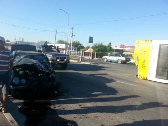 Пассажирский автобус перевернулся в ДТП в Шымкенте Фото с сайта otyrar.kz