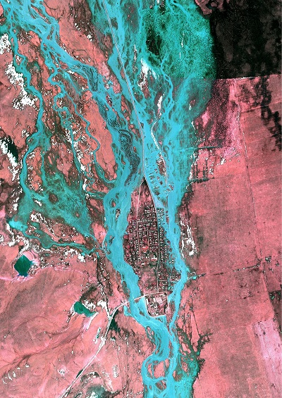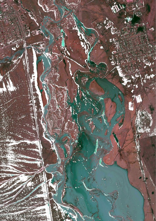Поселок Восток. Каркаралинский район. Дата съемки 13 апреля 2015 года. Спутник KazEOSat-1.