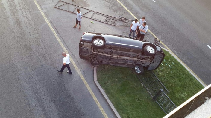 По предварительным данным, причиной аварии стало несоблюдение дистанции. От столкновения впереди идущая Toyota Camry опрокинулась на бок.