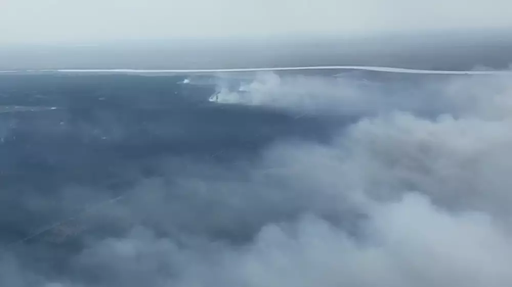 "Ориентировочная площадь пожара по состоянию на 07:40 24 апреля составляет около 2000 гектаров. Количество площади, покрытой и непокрытой лесом, определить не представляется возможным из-за сильной задымленности", - сообщил Дилдахмет.