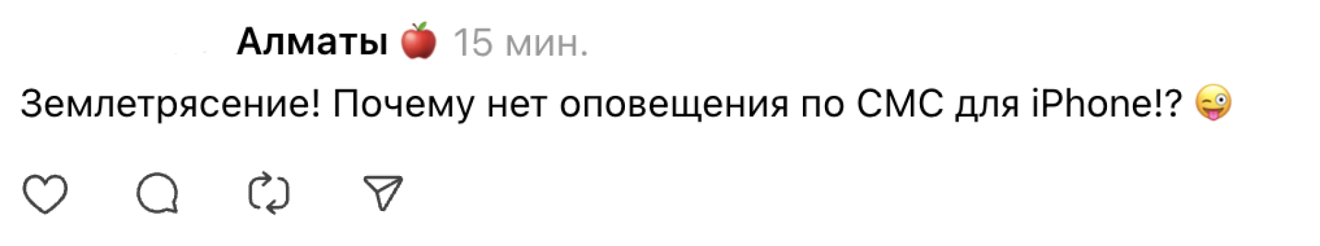 После землетрясения в Алматы в соцсетях появилось много вопросов и жалоб по поводу того, почему на смартфоны гостей и жителей города не пришло уведомление о землетрясении.