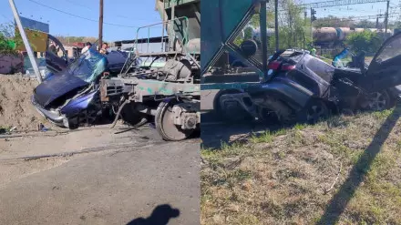 Фотографии с места происшествия опубликовала пользовательница Facebook Ксения Зеленская. По ее словам, на железнодорожном переезде по улице Бурундайская маневровый состав врезался в поток машин, идущих в обе стороны. Согласно публикации, столкновение состава с двумя автомобилями произошло утром 6 мая.