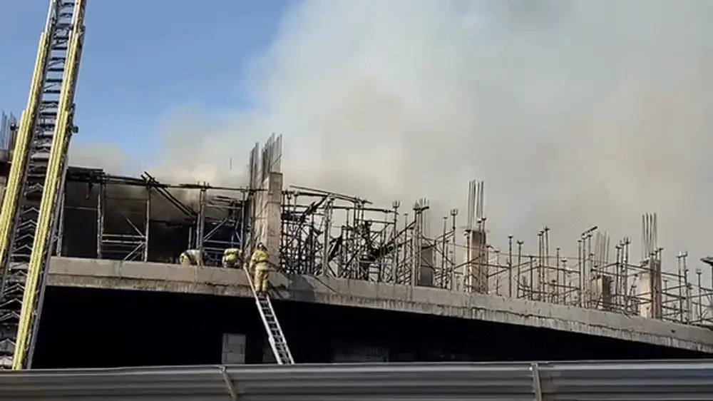 Через полчаса работы пожарных служб основной огонь потушили, но еще оставались очаги возгорания. По данным ДЧС, горят стройматериалы на площади в 200 квадратных метров.