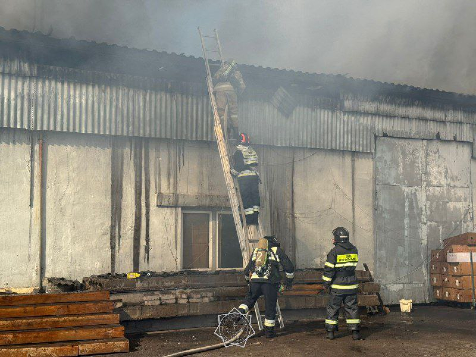 "В эти минуты столичные огнеборцы тушат кровлю складского помещения, расположенного по улице Толстого, район Байконыр. На месте спасатели работают по повышенному рангу", - говорится в сообщении.