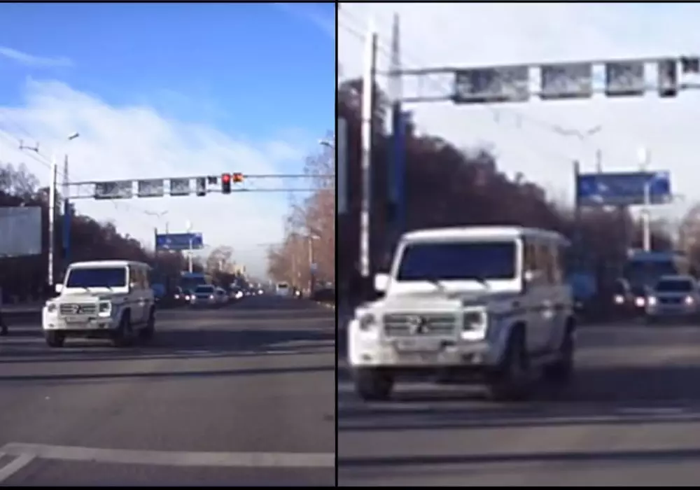 Полиция Алматы разыскивает проехавшего на красный свет водителя Gelandewagen Кадры из видеоролика YouTube