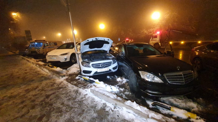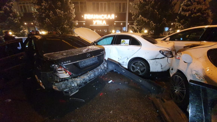 По словам очевидцев, спорткар двигался по улице Сатпаева в восточном направлении. Проехав проспект Назарбаева, машина оказалась на полосе встречного движения и влетела в припаркованные машины. В результате цепных ударов пострадали Lexus LX 570, Mercedes S-класса, Mercedes C-класса и автомобиль Tesla.