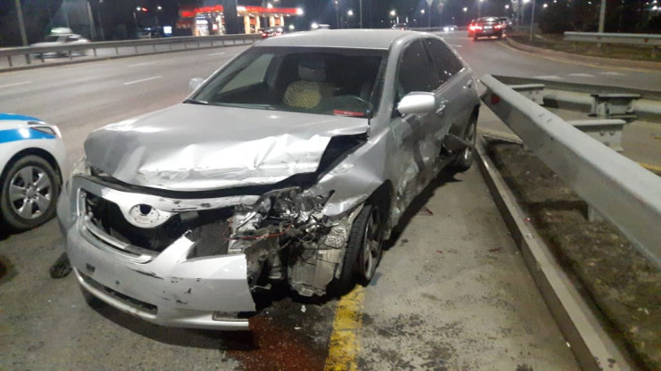 После удара Toyota Camry проехала еще около 50 метров и два раза врезалась в металлический отбойник, а спорткар несколько раз развернуло на месте.