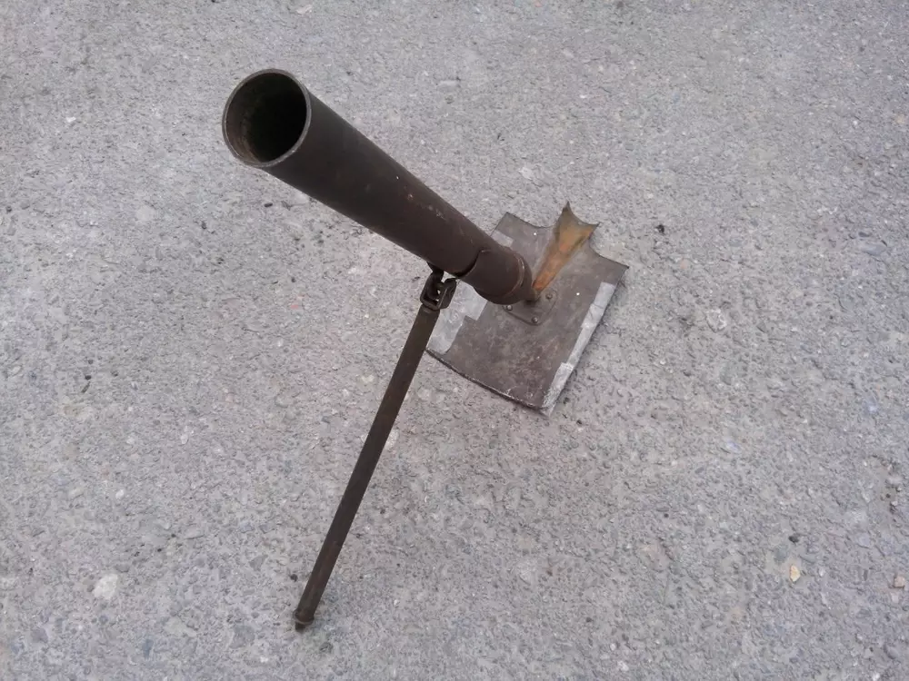 "При осмотре принесенного предмета, выяснилось, что это так называемый гибрид саперной лопатки и миномета, широко использовавшийся советскими солдатами в 40-х годах прошлого века. О происхождении данного миномета мужчина пояснил, что миномет хранился у него в сарае, а остался в наследство от дедушки, который участвовал в Великой Отечественной войне", - сообщили в ДВД.