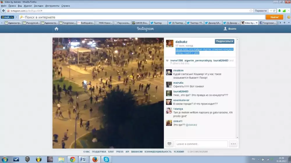 В Алматы зрители устроили беспорядки в торгово-развлекательном центре "Прайм Плаза", который располагается на пересечении улиц Саина и Райымбек батыра, передает корреспондент Tengrinews.kz со ссылкой на Twitter шоумена Данияра Батырбаева. "Стою на крыше "Прайм Плаза". Народ крушит центр. Сломали всю аппаратуру. Милиция не справляется", - написал телеведущий в своем микроблоге. "Приехал ОМОН. Молодежь побежала вдоль Рыскулова", - добавил Батырбаев. По его словам, пострадавшие есть как среди молодежи, так и полицейских: "Скорые уезжают и приезжают". "На улице Саина сожгли и перевернули машину. Прибыло большое усиление ОМОНа. Народ погнали по улице Райымбека в западном направлении", - пишет шоумен. По последним данным Батырбаева, "беспорядки перешли в поселок Ак-булак (Райымбека и Рыскулова)". Видео с места происшествия (автор Самсон Безмятежный / Youtube): Телеведущий отметил, что беспорядки возникли из-за отмены концерта Кайрата Нуртаса в ТРЦ. Видео с места происшествия можно посмотреть здесь. На странице "Прайм Плаза" в социальной сети "Вконтакте" сообщается, что 31 августа в 19.00 в ТРЦ был запланирован финальный концерт битвы-караоке "Запой по пятницам" с участием Кайрата Нуртаса.