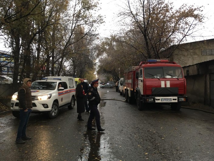 По данным ДЧС, пожар начался в 13.41. По данным ДЧС Алматы, первые пожарные расчеты прибыли к месту вызова уже в 13.46.