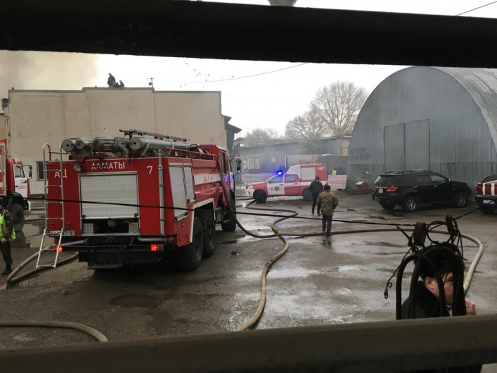 "Я здесь работаю. Храним разные товары. К нам маленький ребенок подбежал и сказал, что начался пожар. Мы увидели, что горит склад. Мы взяли огнетушитель и начали тушить, но огонь усилился. После этого стали звонить в пожарную, скорую", - рассказал очевидец Ерлан Журабаев.