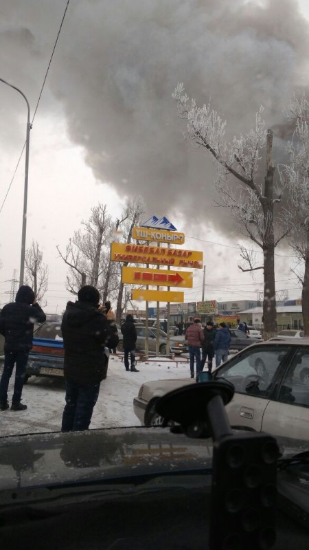 Пожар произошел на рынке "Ушконыр" в Алматы Фото очевидца