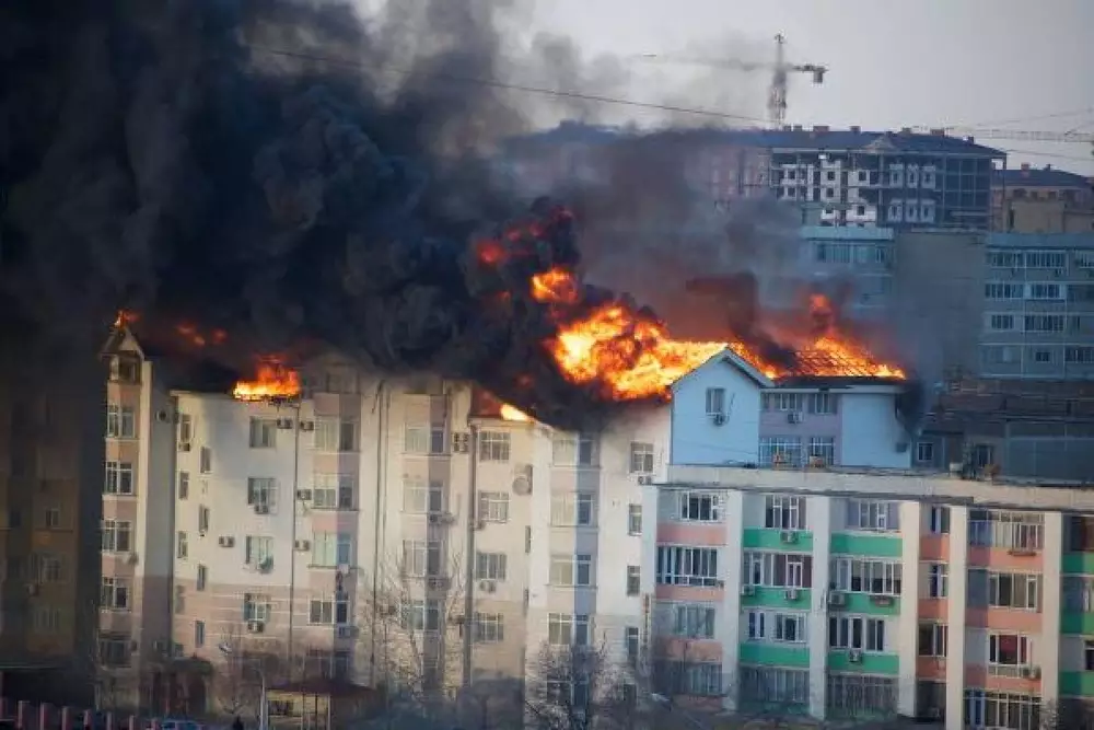 Пожар в Актау: Горит многоквартирный дом Фото Twitter.com/@Aidashov
