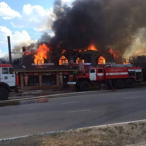 Пожар в Актобе: Горит крупный ресторан Пожар в ресторане "Ланселот". ©Понтий Пилат/facebook.com