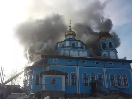 Пожар в Алматы: Церковь загорелась на проспекте Аль-Фараби