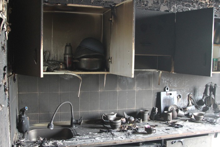 По словам хозяйки квартиры № 48 Алии, от пожара у нее пострадали кухонный гарнитур, холодильник, стены кухни.