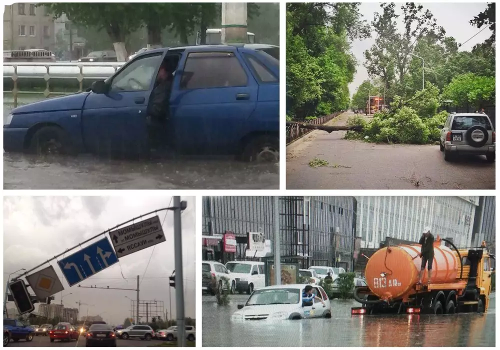 Напомним, ураган с дождем разразился в Алматы и Астане 16 мая. В городах наблюдались сильные порывы ветра. На некоторых улицах были повалены деревья, оборваны линии электропередачи. В связи с непогодой в аэропорту Алматы также были задержаны некоторые рейсы. Как сообщали в ДЧС Алматы, скорость порывов ветра, по данным метеостанции, на момент пыльной бури составила 11 метров в секунду. Пострадавших и жертв нет. В Астане из-за сильного ливня на дорогах столицы начался хаос. Большое количество осадков привело к перекрытию улиц и сильным заторам на дорогах. Между тем, в Костанае дождливая погода в этот день привела к тому, что в различных частях города вода подтопила дороги, привела к проседанию асфальта и заполнила траншеи на ремонтируемых участках.