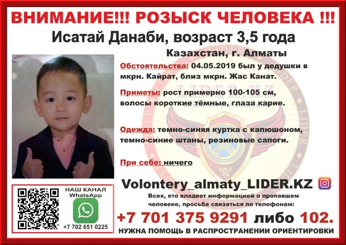 "Мужчина сразу же забил тревогу. Экипажи дорожно-патрульной полиции метр за метром прочесывали как новостройки, так и жилой массив. Оперативники тем временем отрабатывали другие версии исчезновения ребенка, к подворовому обходу и опросу местных жителей присоединилась ювенальная полиция. Посильную помощь в оповещении населения посредством социальных сетей оказали волонтеры. И благо - Исатай нашелся живым и здоровым", - рассказал начальник Управления полиции Турксибского района подполковник Думан Аухадиев.