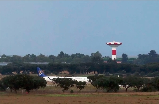 Пытающийся аварийно сесть борт Air Astana засняли на видео Embraer 190 в аэропорту города Бежа. © Jornal de Noticias