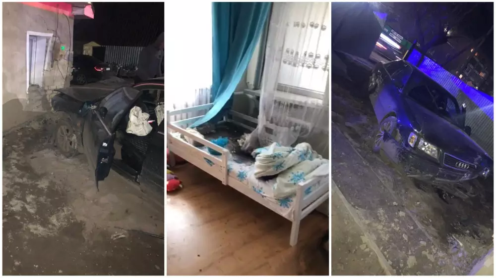 "11 апреля в 01.30 водитель автомашины марки ВАЗ-21099, двигаясь по улице Гагарина, на пересечении с улицей Жусупа, выезжая со второстепенной дороги, совершил столкновение с автомобилем Audi А6, который после удара, продолжив движение, совершил наезд на частный дом. В результате ДТП за медицинской помощью обратились водитель Audi и двое детей, которые находились в доме", - прокомментировали в пресс-службе ДП региона.