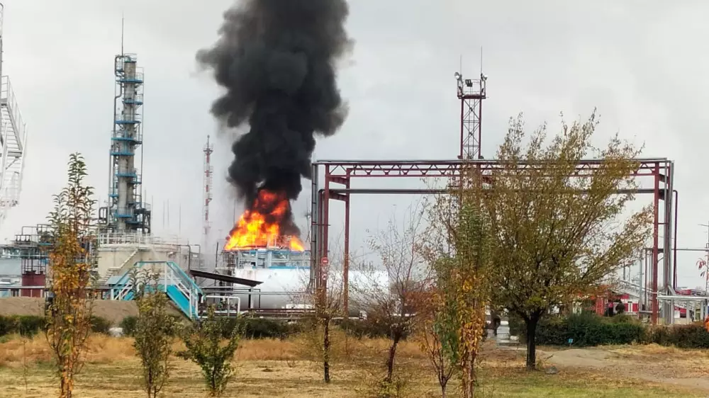 "В селе Аса Жамбылского района Жамбылской области произошел пожар на территории таразского филиала ТОО "Амангельдинский ГПЗ" (газоперерабатывающего завода). Горели два резервуара с дизельным топливом общим объемом 480 кубометров. Сообщение в дежурную службу ДЧС поступило в 12 часов 4 минуты", - говорится в сообщении.