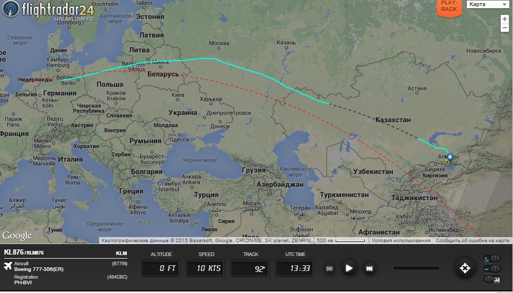 В аэропорту Алматы совершил экстренную посадку самолет нидерландской авиакомпании KLM, сообщает UpintheSky.